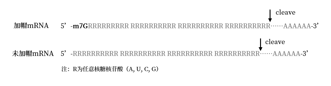 长链编码RNA通常由成千上万个核苷酸(nt)组成,而加帽与未加帽的mRNA仅相差一个甲基化鸟苷(m7G),这一微小的差异导致其在全长mRNA中难以区分。当前加帽率的检测思路为:通过酶切获得5’端RNA片段(长度约几十个核苷酸),随后通过液相色谱(HPLC)或液质联用(LC-MS)等方法分离不同长度的5’端寡核苷酸片段,从而定量评估mRNA的加帽率。
